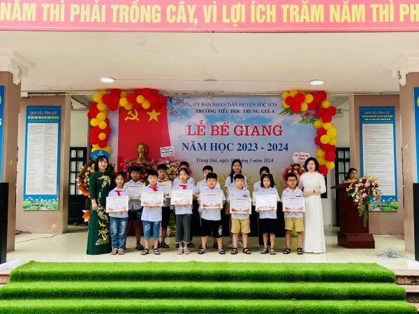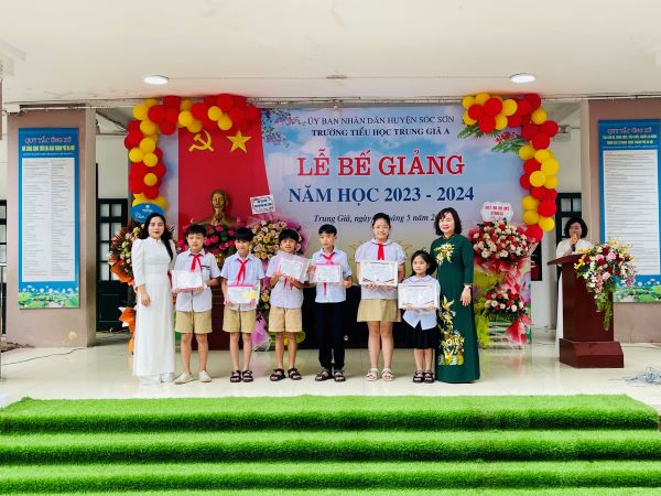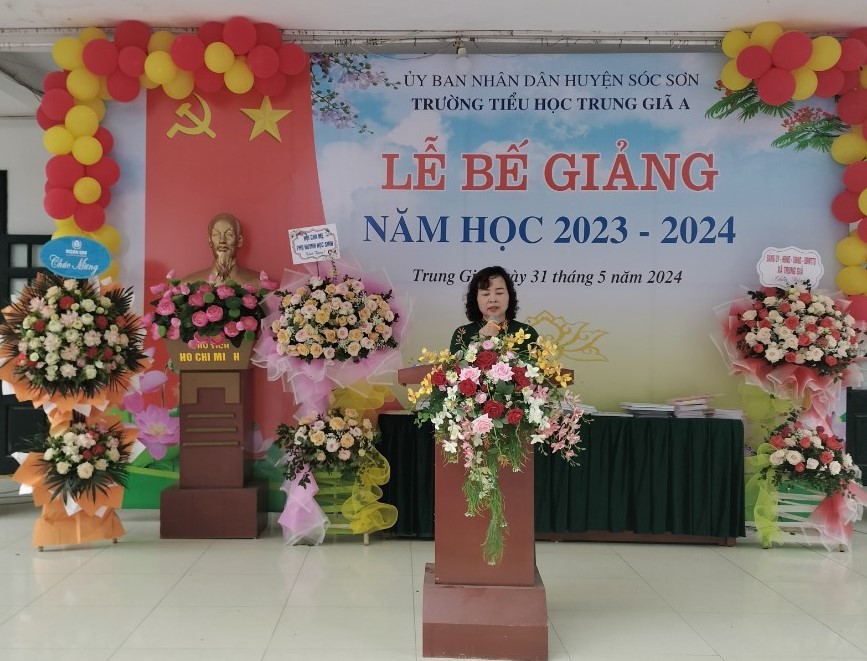 Tại trường Tiểu học Trung Giã A (xã Trung Giã, huyện Sóc Sơn) buổi Lễ bế giảng được mở đầu bằng những tiết mục văn nghệ đặc sắc đầy hấp dẫn và sôi động do chính các em học sinh của các trường Tiểu học Trung Giã A biểu diễn đã tô điểm cho buổi lễ thêm phần rực rỡ sắc màu.