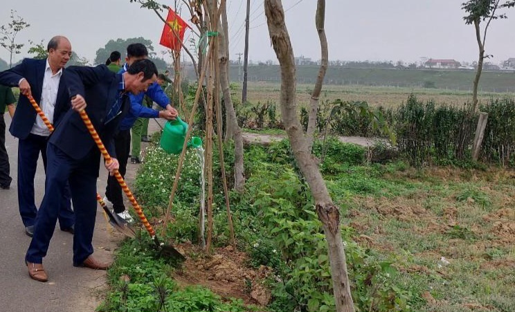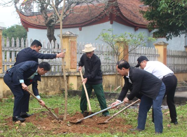 Lãnh đạo Đảng ủy, HĐND, UBND, UBMTTQ xã Trông cây và nhân dân trồng cây.