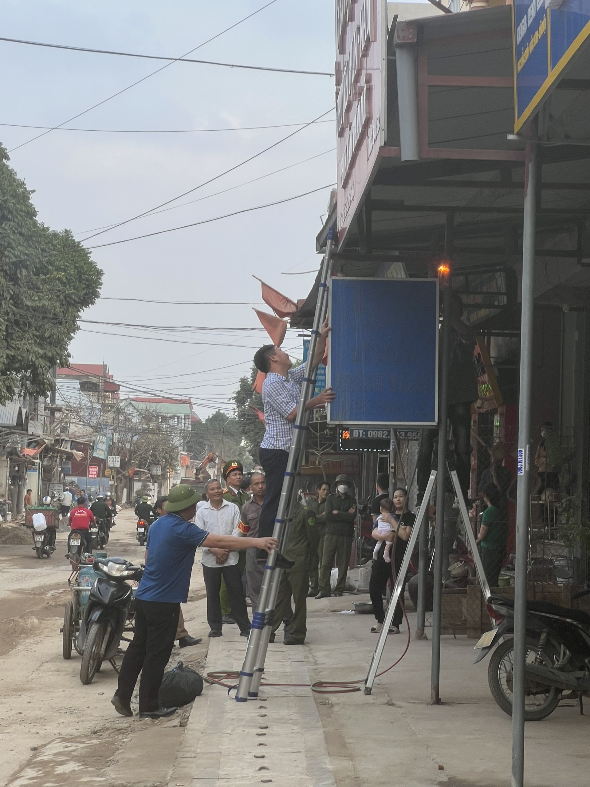Biển quảng cáo sai phạm tại xã Bắc Phú bị lực lượng chức năng thu giữ.