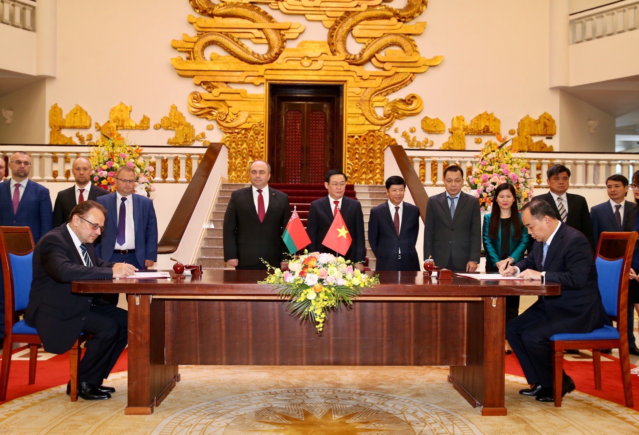 Sau hội đàm, Phó Thủ tướng Vương Đình Huệ và Phó Thủ tướng Belarus I. Lyashenko đã chứng kiến lễ ký kết Chương trình hợp tác văn hóa giữa Bộ Văn hóa, Thể thao và Du lịch và Bộ Văn hóa Belarus giai đoạn 2020-2022.