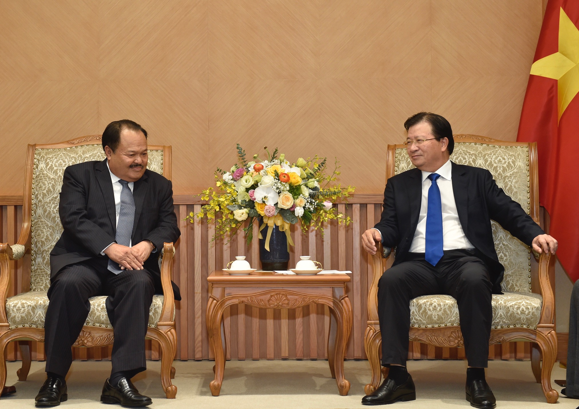 Tại buổi tiếp, Phó Thủ tướng Trịnh Đình Dũng nhấn mạnh, quan hệ giữa Việt Nam và Lào là mối quan hệ đoàn kết, hữu nghị, anh em mẫu mực. Trong đó, hợp tác kinh tế - thương mại - đầu tư là một trong những trụ cột nhằm phát huy sức mạnh của cả hai nước.