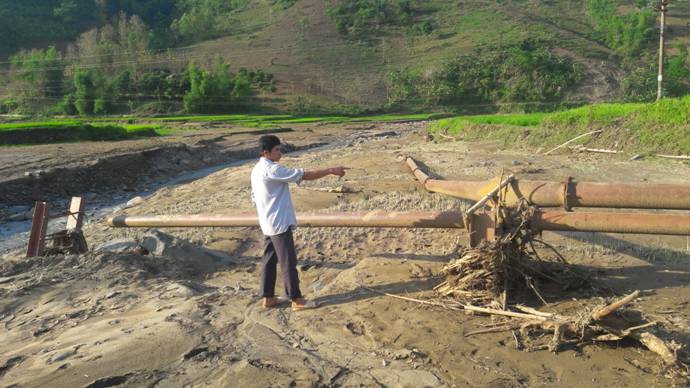 Trao đổi với phóng viên tại hiện trường, anh Cầm Văn Khương, bản Nhọt 1, xã Gia Phù, huyện Phù Yên bất bình cho biết: cứ nhắc đến cái công trình nước của huyện này, nhân dân ở đây ai cũng cười. Nước chảy thì phập phù, lúc có, lúc không. Cơn mưa vừa rồi, nước chảy kiểu gì mà trơ hết cả móng trụ đường ống. Nứt gẫy hết, đường ống nước đã cong, toác cả rồi. Nói rồi anh Khương dẫn phóng viên ra hiện trường để chỉ những dấu vết của dự án đã hỏng và tàn tích của nó.