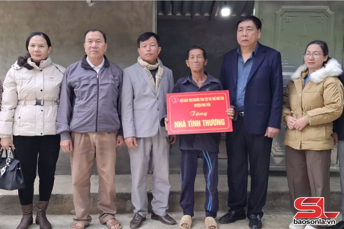 Hội Bảo trợ người tàn tật và trẻ mồ côi huyện Phù Yên bàn giao Nhà tình thương cho ông Sa Văn Thành - Ảnh: Báo Sơn La