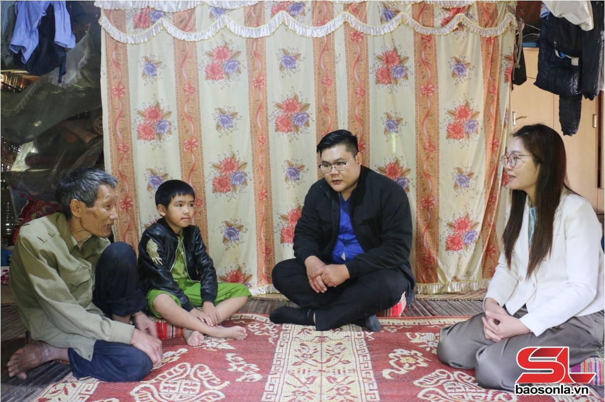 Cán bộ xã Chiềng Xôm, thành phố Son La thăm hỏi, động viên người khuyết tật nặng tại bản Tông - Ảnh: Báo Sơn La