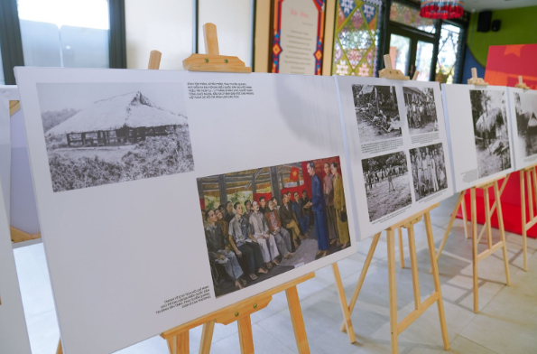 Không gian trưng bày với nhiều hình ảnh kể câu chuyện về Quốc dân Đại hội Tân Trào.