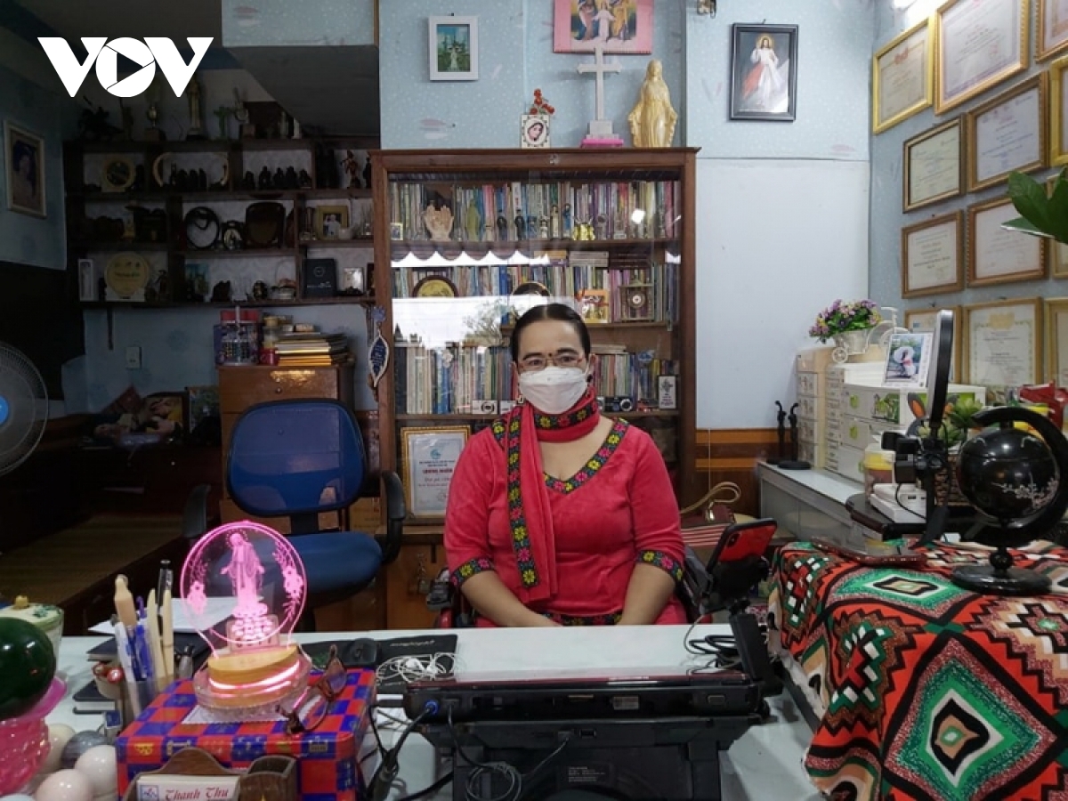 Chị Thu dù tàn tật nhưng có nghị lực phi thường và tích cực tham gia hoạt động thiện nguyên (Ảnh: VOV)