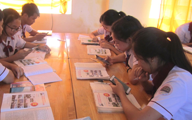 Tuy nhiên, việc sử dụng điện thoại, đặc biệt là smartphone trong trường phổ thông hiện nay mỗi nơi mỗi khác. Có nơi cấm triệt để HS sử dụng điện thoại trong giờ học; có nơi cho phép giáo viên, HS ứng dụng smartphone để hỗ trợ quá trình giảng dạy, học tập. Một số trường cũng linh động khai thác lợi thế từ thiết bị di động để dạy và giúp HS vừa thoát khỏi cách học lệ thuộc vào tài liệu trên giấy, ghi chép theo kiểu truyền thống, vừa làm chủ công nghệ.
