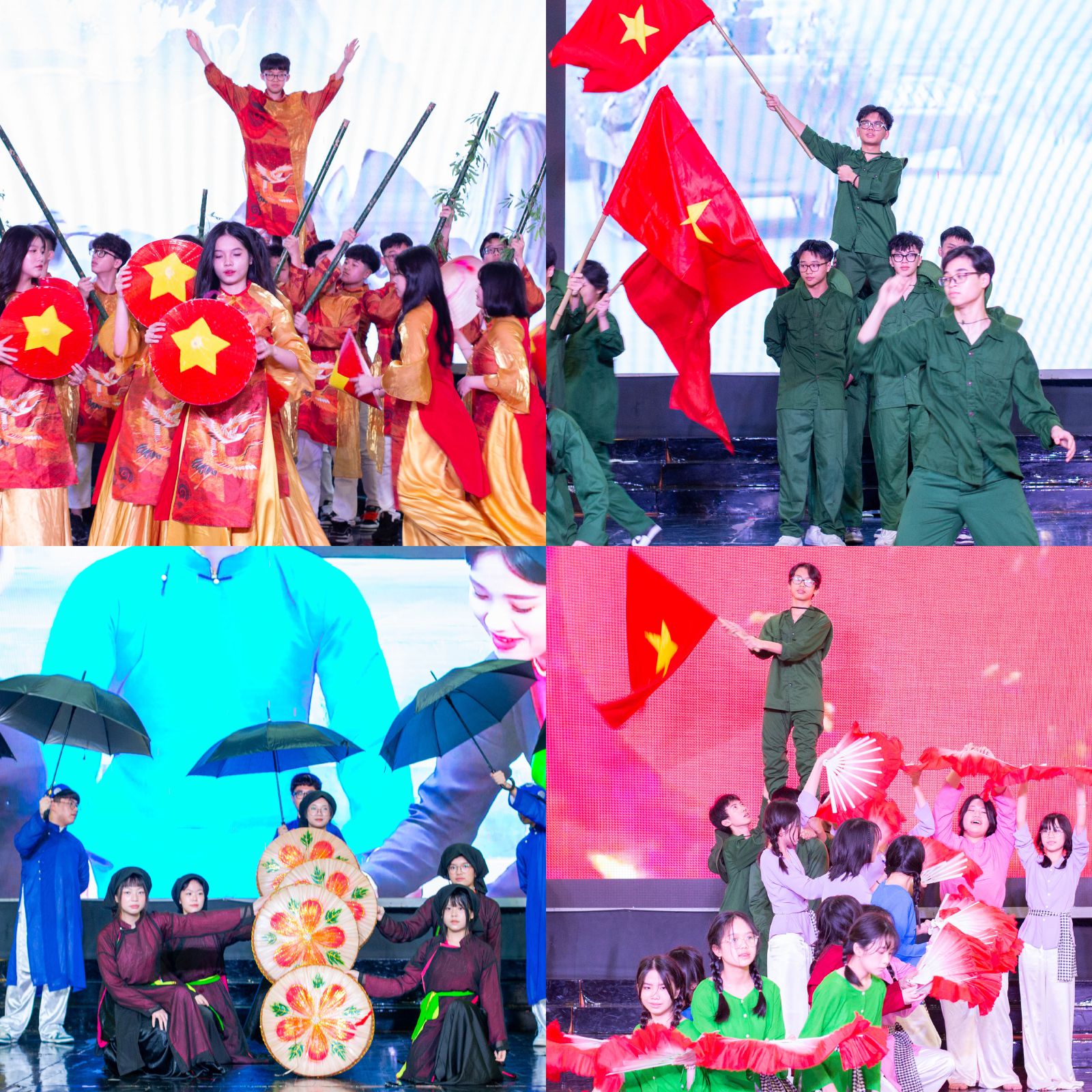 Những màn biểu diễn kết hợp vũ đạo, âm nhạc, hoạt cảnh sân khấu hoành tráng, công phu với đạo cụ và phục trang bắt mắt, theo dòng chảy của lịch sử - địa lý - văn hoá các thời kỳ trong “Văn hoá dân gian - Mạch nguồn” Khối 10; “Hào khí VIệt Nam - Nam quốc sơn hà” Khối 7; “Khúc hát tuổi thanh xuân” Khối 12; “Việt Nam quê hương tôi” Khối 9, là những tiết mục đem đến cho khán giả không khí hào hùng, sục sôi chiến đấu và niềm tự hào dân tộc mãnh liệt.