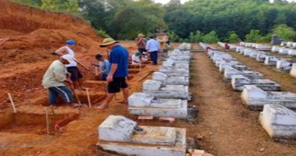 Hình ảnh khi bắt đầu tu bổ, sửa chữa tại nghĩa trang cải táng.