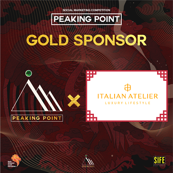 Đồng hành cùng Peaking Point 2, không thể không kể đến sự giúp đỡ nhiệt thành đến từ nhà tài trợ Vàng - thương hiệu Italian Atelier. Italian Atelier là công ty đa quốc gia được thành lập từ năm 2008 bởi 2 nhà sáng lập Dino và Gianfranco Bianchi với tầm nhìn định hình lại chỗ đứng của đồ nội thất cao cấp đến từ Châu Âu tại Châu Á - Thái Bình Dương. Italian Atelier luôn là cái tên được nhớ tới trong dịch vụ tư vấn và nghiên cứu thị trường nội thất cao cấp tại Châu Á - Thái Bình Dương với cơ sở dữ liệu độc quyền. Những doanh nghiệp tên tuổi nổi tiếng trên thế giới như Dior, L’Oréal, Google, Microsoft,… đều đã từng hợp tác trong các dự án lớn cùng Italian Atelier. Với nhiệt huyết và tình yêu của hai nhà sáng lập dành cho công ty, Italian Atelier được sinh ra với sứ mệnh mang tới cho thị trường nội thất sự sang trọng,chất lượng và sự hoàn hảo.