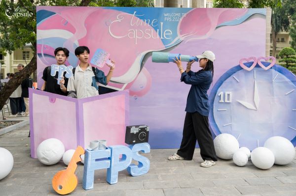 Tiếp nối sự thành công của bộ ảnh viral “Time Sanctuary” gây sốt mạng xã hội những ngày vừa qua, “FPS 2024 - Time Capsule” tiếp tục mang đến món quà tinh thần tiếp theo khi đã thiết kế nên một không gian check-in độc đáo ngay trong chính khuôn viên trường.