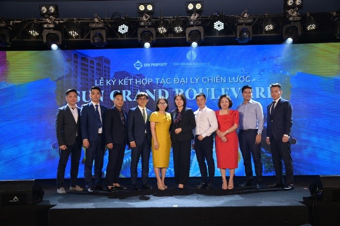 8 đại lý phân phối chính thức dự án Sun Grand Boulevard chụp hình lưu niệm với đại diện chủ đầu tư.