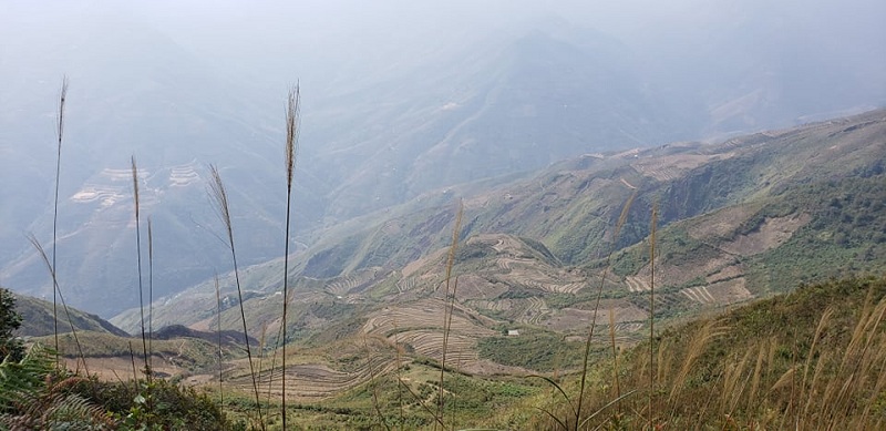 Khi vượt qua biển mây, ánh nắng mặt trời tăng độ, những mảng mây với các lớp hình thù nhẹ dần, tan dần cũng là lúc những tranh màu của bản Mông hiện dần ra trong mờ ảo. Những con đường mòn uốn lượn gấp khúc, mái nhà Mông đơn cô trên những ô đất bậc thang… như nét xuyến chênh vênh, tuyệt đẹp. Gió chuyển đông và đuổi mây vào các vách núi để thung lũng trở lại của buổi sáng tinh khôi. Mây cũng bắt đầu áp vào vách núi, men lên cao, ôm lấy những đỉnh núi. Đường sống lưng và mũi của mỏm núi nhô ra dần chìm vào trong sắc trắng bồng bềnh. Những mảng mây trong và hơi lạnh theo gió táp vào những người trốn muộn khi đón bình minh trên đường mòn sống núi. Đứng giữa vùng thiên nhiên ấy ta tựa ra khung cảnh như sóng mây phía sau chồm tới, chực chờ nuốt trọn cả không gian và con người trên dải đất từ vách núi cao…
