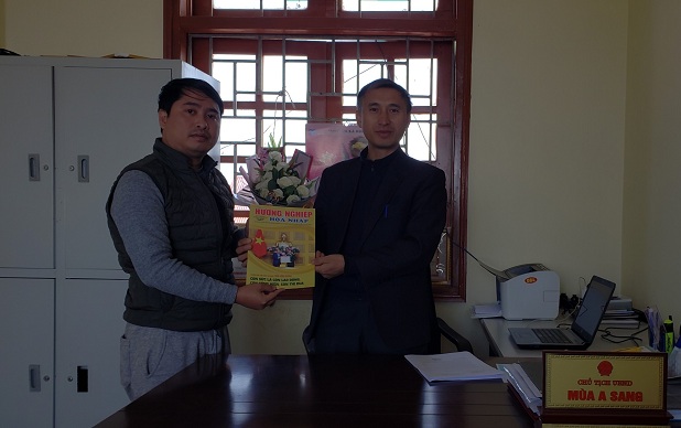 Ông Mùa A Sang – Chủ tịch UBND xã Tà Xùa, huyện Bắc Yên, tỉnh Sơn La. (Bên phải)
