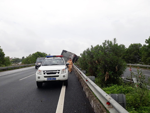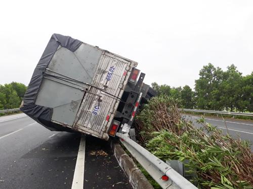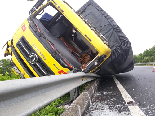 Theo thông tin ban đầu của cơ quan chức năng, chiếc xe tải chở hàng tạp hóa, do lái xe đi đường dài, buồn ngủ, không làm chủ được tay lái và va vào giải phân cách gây lật xe. Rất may lúc này đường vắng nên không gây thiệt hại về người nhưng chiếc xe hư hỏng nặng.