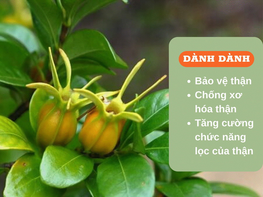 Bên cạnh tuân thủ phác đồ điều trị được chỉ định, người bệnh suy thận nên kết hợp sử dụng các thảo dược tốt cho thận, giúp phục hồi chức năng thận, tiêu biểu như dành dành. Thảo dược này chứa hoạt chất crocin có tác dụng rất tốt đối với các vấn đề của thận, hỗ trợ điều trị suy thận hiệu quả. Nghiên cứu của các trường đại học và bệnh viện tại Trung Quốc (Đại học Tế Nam, Đại học Y khoa Côn Minh,...) cho thấy, các hoạt chất trong quả cũng như thân cây dành dành có tác dụng bảo vệ thận, chống xơ hóa thận, tăng cường chức năng lọc của thận.