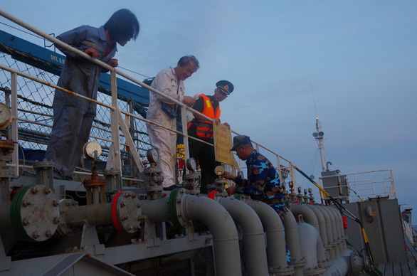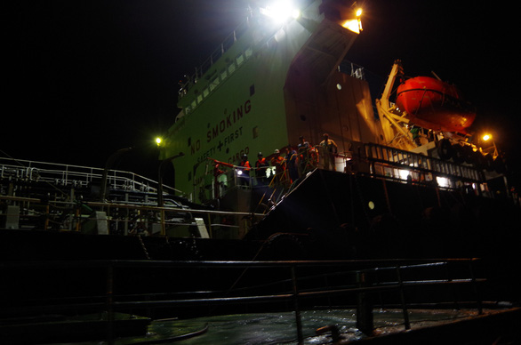 Trước đó, như Tuổi Trẻ Online thông tin, tối 14-4 cơ quan chức năng bắt quả tang tàu M/T Pioneer Spirt (Hàn Quốc) đang bơm xăng A95 sang tàu vận tải QNg-0350 thuộc Công ty TNHH một thành viên dịch vụ hậu cần Lý Sơn 2.