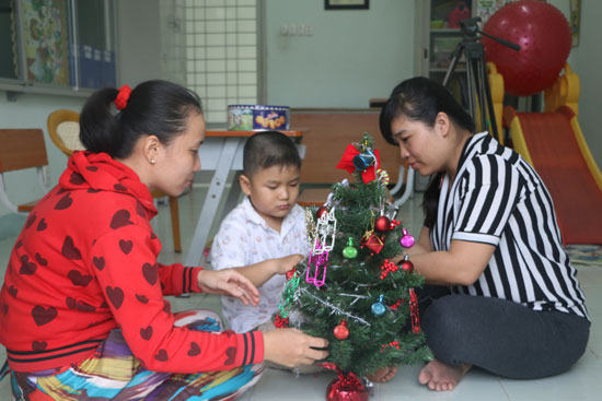 Chị Trúc chuẩn bị cây thông Noel cho trẻ khuyết tật đón Giáng sinh.