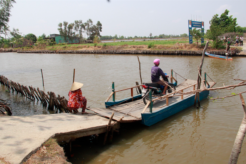 | Chiếc phà ở Ấp 8, xã Trí Lực là phương tiện chở bà con qua kênh Kiểm |