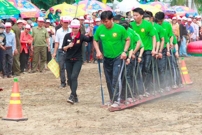 | Hai đội của hai xã Tân Lộc và Trí Lực thi đấu trong chương trình “Nhịp Cầu Ước Mơ” |