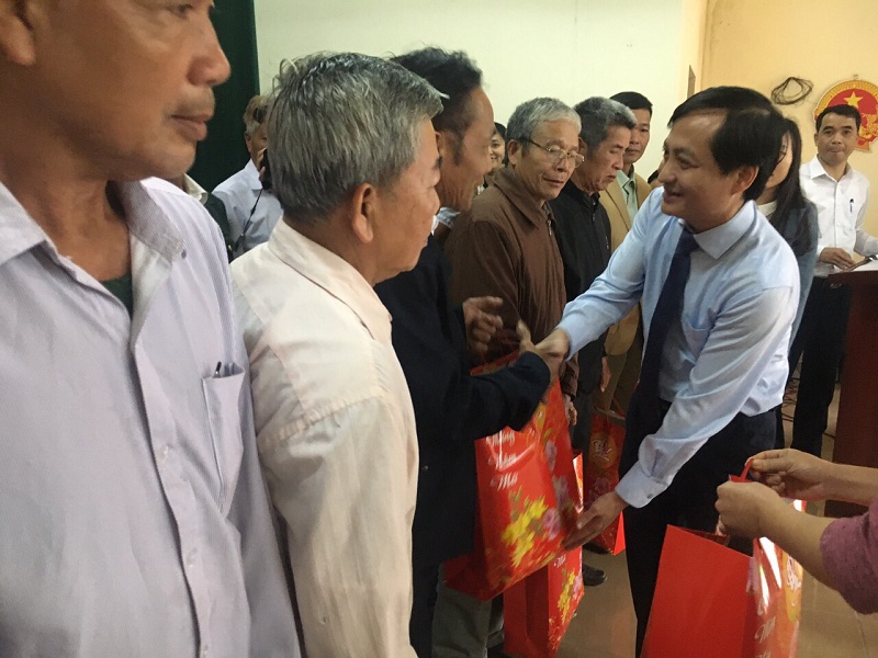 Ông Phạm Thanh Tùng - Bí thư Huyện ủy Tân Sơn trao những món quà đong đầy ý nghĩa, động viên, khích lệ những người có uy tín trong năm qua.