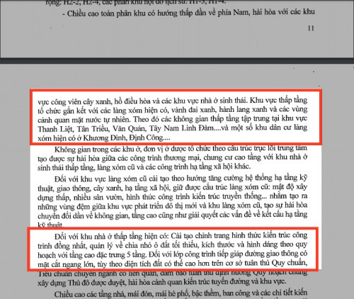 Đối với khu nhà thấp tầng hiện có quy định cấu tạo chỉnh trang hình thức kiến trúc công trình đồng nhất, quản lý về chia nhỏ ô đất tối thiểu, kích thước và hình dáng theo quy hoạch với chiều cao đặc trưng 5 tầng. Đối với lớp công trình tiếp giáp đường giao thông có mặt cắt ngang lớn, tuỳ theo diện tích đất có thể cao hơn trên cơ sở tuân thủ Quy chuẩn, Tiêu chuẩn chuyên ngành có liên quan, đảm bảo tuân thủ định hướng Quy hoạch chung xây dựng Thủ đô được duyệt.
