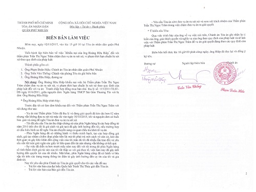 | Biên bản làm việc ngày 2/11/2017 giữa ông Hiệp và Chánh án TAND quận Phú Nhuận Phạm Doãn Hiếu |