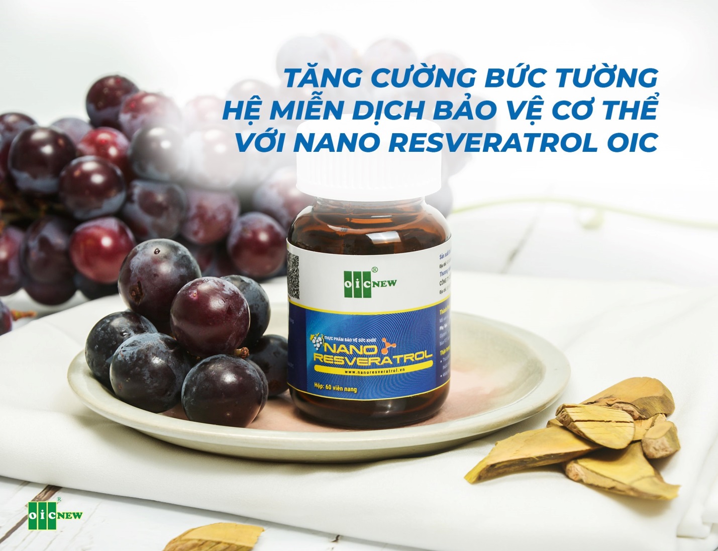 Nano Resveratrol OIC như một tấm khiên vững chắc giúp cơ thể có đề kháng khỏe và bảo vệ sức khỏe một cách toàn diện nhất. Thay vì uống rượu vang hàng ngày, mỗi ngày 2 viên Resveratrol giúp bạn vui khỏe phòng bệnh!
