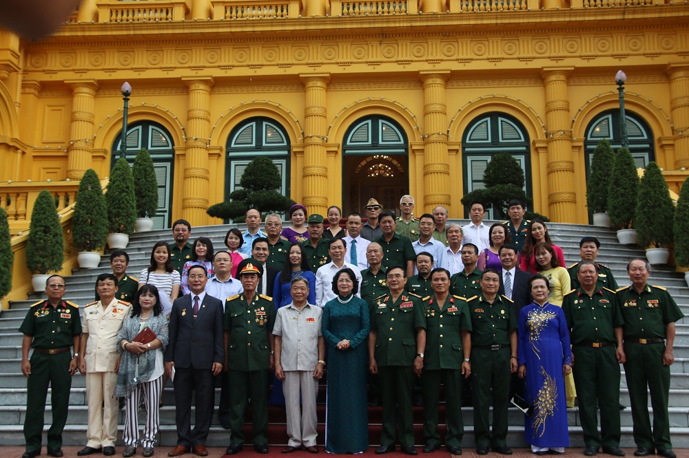 | Phó Chủ tịch nước Đặng Thị Ngọc Thịnh chụp ảnh kỷ niệm cùng đoàn đại biểu Hiệp hội Doanh nghiệp của Thương binh và NKT Việt Nam |