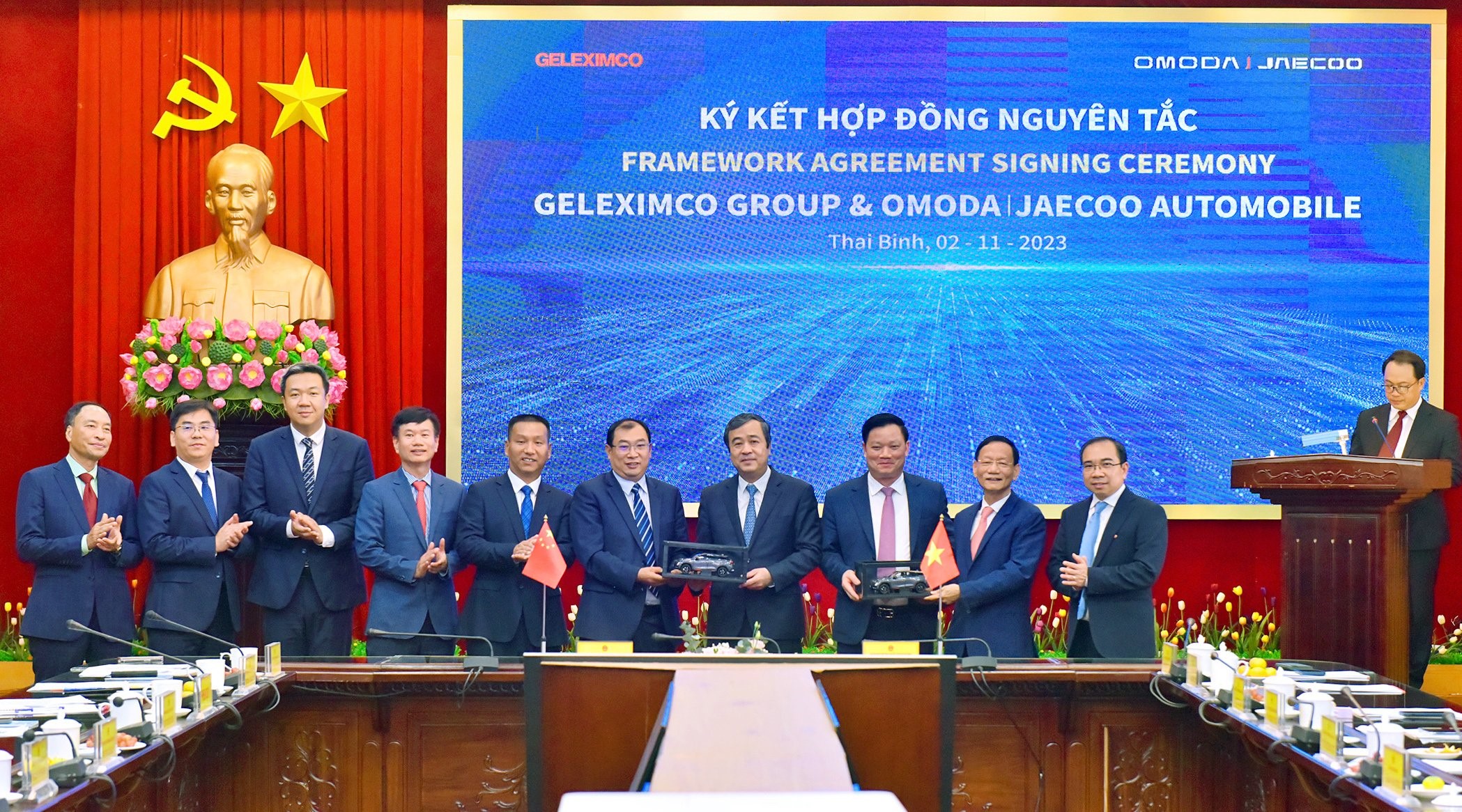 Phát biểu tại buổi ký kết, Chủ tịch Ủy ban nhân dân tỉnh Thái Bình Nguyễn Khắc Thận đánh giá cao việc Tập đoàn Geleximco và Công ty TNHH Ô tô Omoda & Jaecoo đã đầu tư xây dựng nhà máy sản xuất ô tô tại Khu kinh tế Thái Bình. Dự án sẽ là “thỏi nam châm” thu hút các doanh nghiệp công nghiệp phụ trợ, thu hút nhân lực trình độ cao đến làm việc tại Khu kinh tế Thái Bình.