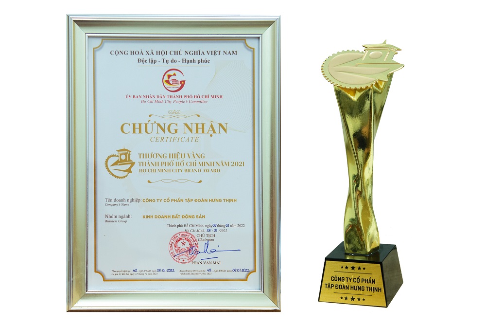Trong một năm đầy khó khăn này, bằng việc duy trì hệ sinh thái tối ưu và bền vững, không ngừng đưa ra những chính sách linh hoạt thích ứng với “bình thường mới”, Tập đoàn Hưng Thịnh đã tiếp tục giữ vững vị thế hàng đầu trên thị trường. Với quy trình xét duyệt đảm bảo sự khách quan, công bằng từ Hội đồng bình chọn là các chuyên gia uy tín, Tập đoàn Hưng Thịnh đã vinh dự góp mặt trong danh sách 30 doanh nghiệp đạt giải Thương hiệu Vàng TP.HCM 2021, và cũng là 1 trong 3 doanh nghiệp địa ốc ở TP.HCM được trao tặng danh hiệu này.