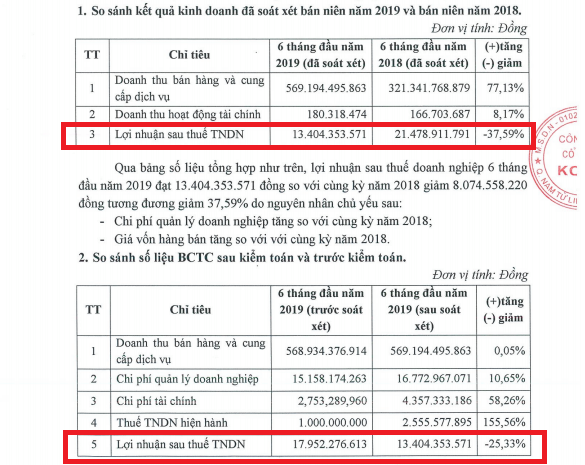 Nguyên nhân của chênh lệch, do các loại chi phí tài chính, chi phí quản lý của Kosy được điều chỉnh tăng. Bên cạnh đó, doanh nghiệp cũng thực hiện trích thêm thuế thu nhập doanh nghiệp tạm tính trong 6 tháng đầu năm.