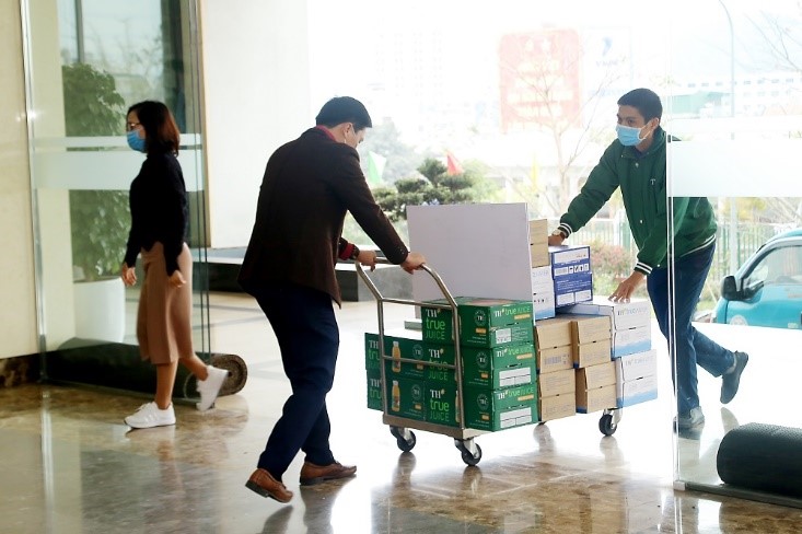 Ngày cuối cùng của tháng 1, những chuyến hàng mang theo những ly sữa, nước trái cây tặng lực lượng chống dịch và người dân khu cách ly đã đến nơi.
