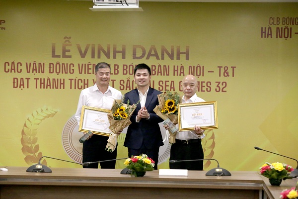 Thành viên ban huấn luyện CLB bóng bàn Hà Nội T&T được vinh danh.