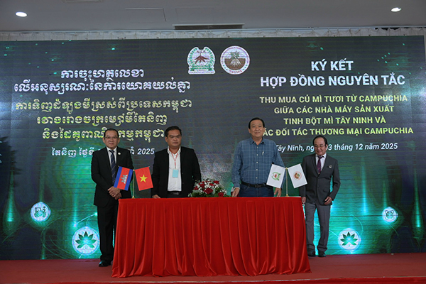 Tại hội nghị, Liên đoàn Sắn Campuchia và Hiệp hội Sản xuất tinh bột mì Tây Ninh đã ký kết hợp tác, cùng chuỗi hợp đồng nguyên tắc giữa doanh nghiệp hai nước. Các doanh nghiệp Campuchia như Capital Cassava Agriculture Import Export Co., Ltd và Golden Cassava Agriculture Import Export Co., Ltd đã ký hợp tác với nhiều đơn vị phía Việt Nam: Công ty Sầm Nhứt, Nguyên Liêm, Hữu Đức Tây Ninh, Trường Hưng, Hiền Vũ, Hồng Cúc Tây Ninh, Tinh bột mì Tân Biên, Tapioca Việt Nam, hệ thống Hùng Duy, Thanh Thanh Xuân, Bột mì Bảo Duy…