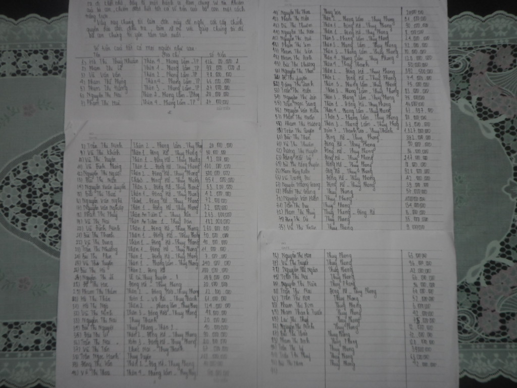 Danh sách những người bị chiếm đoạt tiền tại xã Thụy Phong.