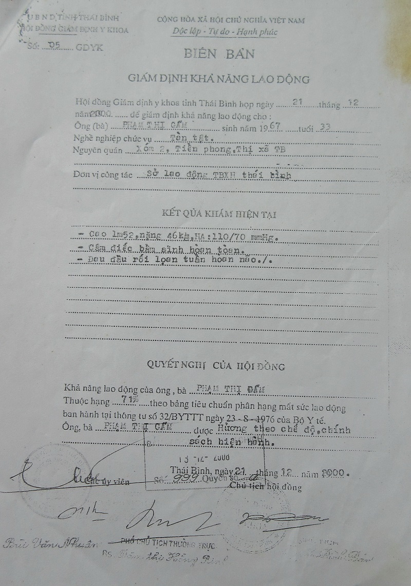 Biên bản Giám định khả năng lao động của bà Phạm Thị Gấm