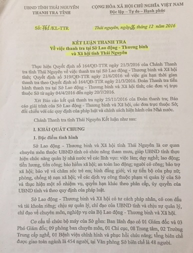 Sở LĐ-TB&XH tỉnh Thái Nguyên là cơ quan chuyên môn thực hiện chức năng quản lý nhà nước về các lĩnh vực: việc làm, dạy nghề, lao động, tiền lương, tiền công, bảo hiểm xã hội, an toàn lao động… Tuy nhiên, thời gian qua chính tại cơ quan này lại để xảy ra nhiều sai phạm trong công tác tuyển dụng, tổ chức cán bộ, bố trí việc làm đối với người lao động.