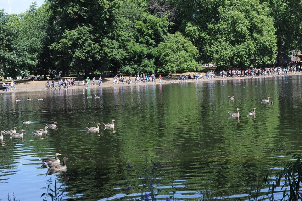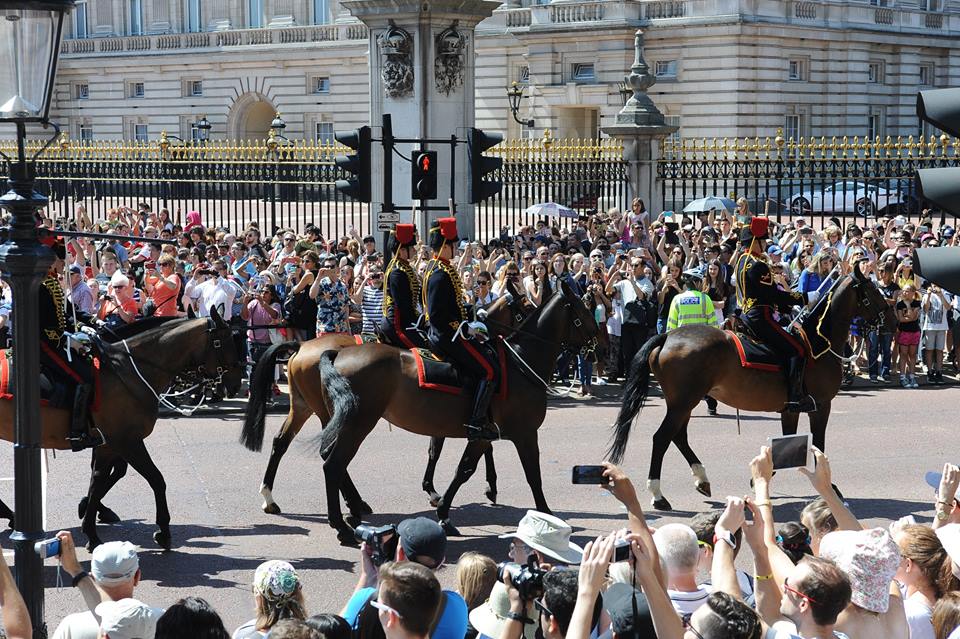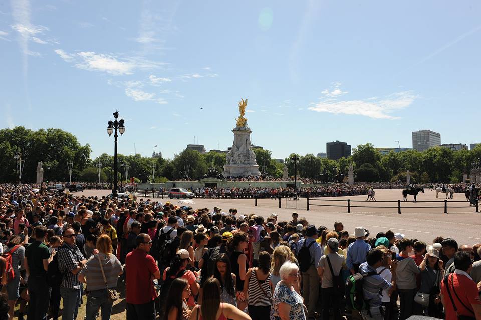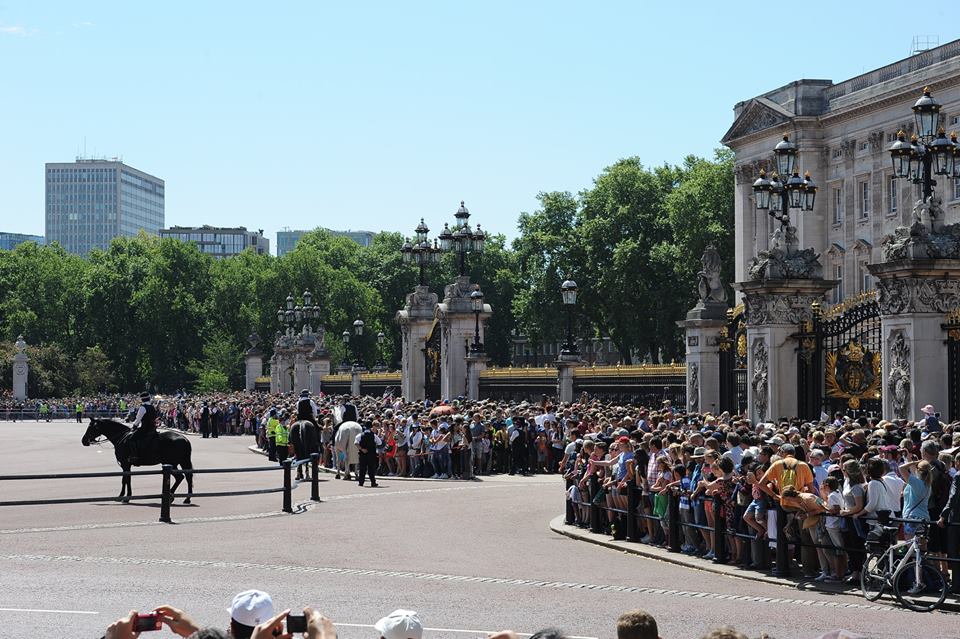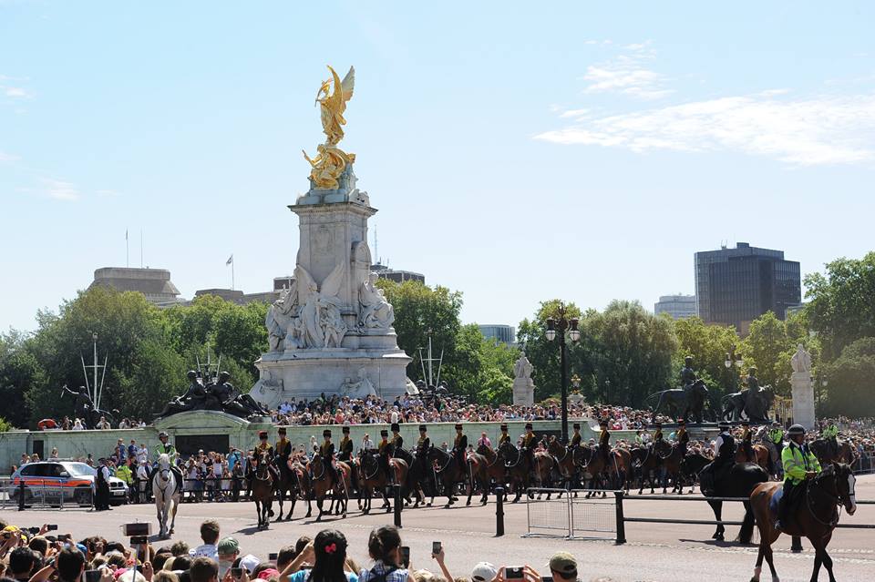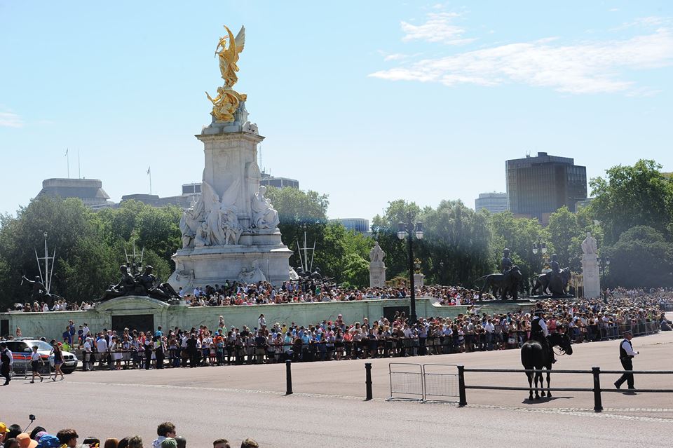 | Tôi may mắn một ngày thăm Cung điện Buckingham, gặp ngay Ngày lễ trọng đại của nhân dân và Hoàng gia Anh: Mừng chiến thắng trong cuộc Chiến tranh thế giới 1914 - 1918. Trên bầu trời thì đủ loại máy bay từng tham chiến trong cuộc chiến ấy với hầu hết các thế hệ máy bay chiến đấu sau Thế chiến thứ II cho đến nay của Quân đội Hoàng gia Vương quốc Anh bay duyệt theo đội hình; dưới đât ngay trong khu vực Quảng trường và lân cận Cung điện Buckingham thì duyệt kỵ binh và hàng chục vạn quần chúng nhân dân cùng các thành viên Nội các, Quốc hội... chào mừng Ngày lễ trọng đại với Nữ hoàng, Hoàng gia |