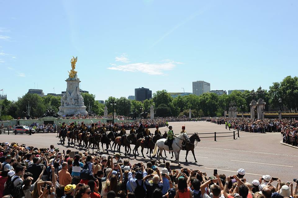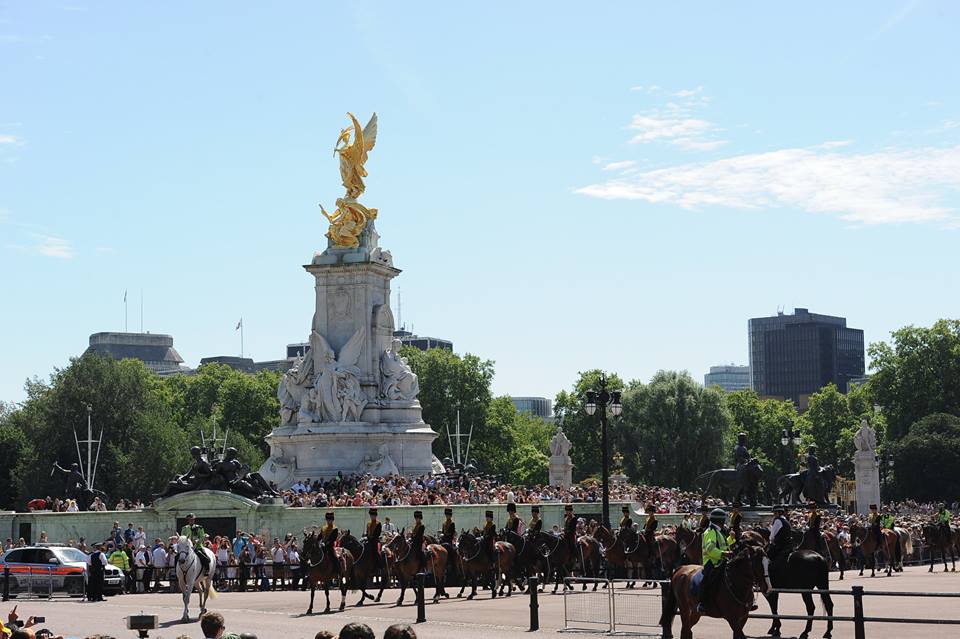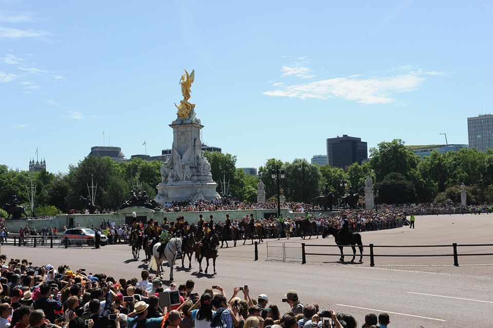 | Ngay trong khu vực Quảng trường và lân cận Cung điện Buckingham thì duyệt kỵ binh và hàng chục vạn quần chúng nhân dân cùng các thành viên Nội các, Quốc hội... chào mừng Ngày lễ trọng đại với Nữ hoàng, Hoàng gia |