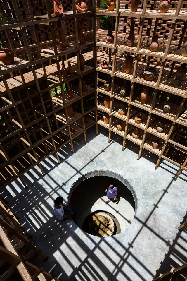 Nó gợi nhớ đến lò nung đất sét truyền thống với các lỗ để thông gió tự nhiên và mang đến âm thanh của thiên nhiên, cũng như để làn gió mát từ con sông Thu Bồn kế bên thổi vào