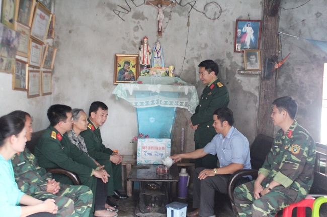 Đại diện chỉ huy Sư đoàn 324 (Quân khu 4) thăm, tặng quà bà Nguyễn Thị Lợi là giáo dân có công với cách mạng ở xóm 9, xã Sơn Hải.