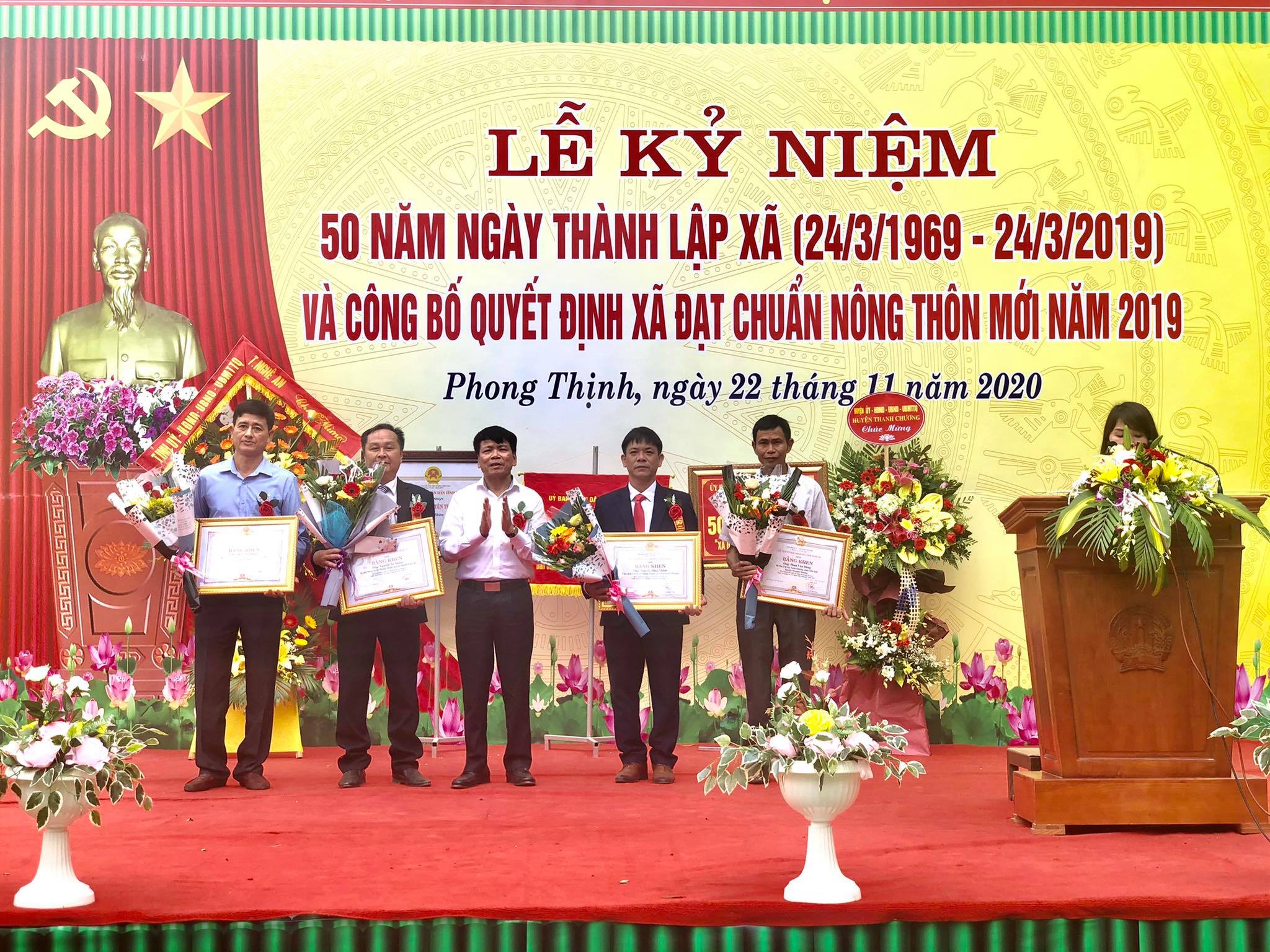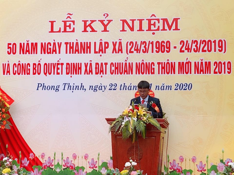 Dự lễ kỉ niệm 50 năm hợp nhất xã Phong Thịnh và lễ đón nhận Bằng công nhận xã đạt chuẩn Nông thôn mới năm 2020 tại xã Phong Thịnh, huyện Thanh Chương có đồng chí Nguyễn Tiến Lâm - Phó Giám đốc sở Nông nghiệp và PTNT Nghệ An, các đại diện sở ban ngành cấp Tỉnh, lãnh đạo huyện Thanh Chương và đông đảo bà con nhân dân xã Phong Thịnh.