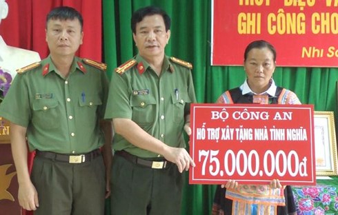 | Công an tỉnh Thanh Hóa cũng trao số tiền 75 triệu đồng của Bộ Công an hỗ trợ xây dựng nhà tình nghĩa cho người thân anh Súa |