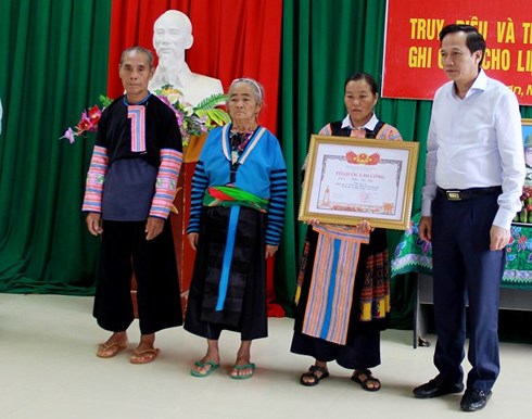 Ngày 22/8, ông Đào Ngọc Dung, Bộ trưởng Bộ LĐ-TB&XH đã trao bằng Tổ quốc ghi công cho thân nhân Trưởng Công an xã Thao Văn Súa, người đã hy sinh khi giúp dân chống lũ.