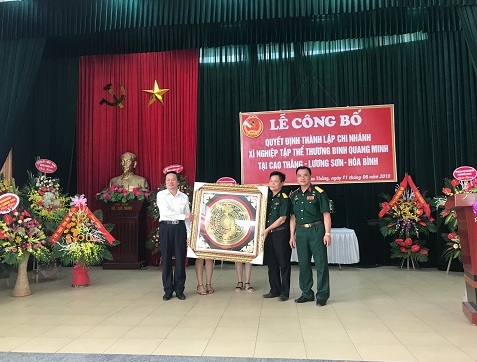 Theo Quyết định, Chi nhánh Xí nghiệp tập thể thương binh Quang Minh sẽ được đặt tại xã Cao Thắng, huyện Lương Sơn, tỉnh Hòa Bình. Xí nghiệp Quang Minh chuyên hoạt động kinh doanh về khai thác đá, cát, sỏi, đất sét; sản xuất vôi, xi măng và thạch cao; sửa chữa máy móc, thiết bị; lắp đặt hệ thống điện; chuẩn bị mặt bằng; bán mô tô, xe máy; bán buôn nhiên liệu rắn, lỏng, khí...