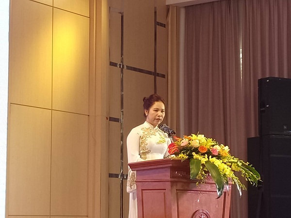 | Bà Nguyễn Thị Lan Hương - Chủ tịch Liên hiệp phát biểu taị hội nghị |