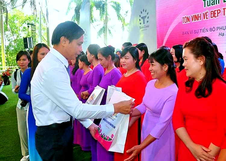 Cũng trong chương trình, Thành ủy, HĐND, UBND TP Hạ Long và Tập đoàn Tuần Châu đã trao tặng 100 bộ áo dài và các phần quà cho 100 chị em phụ nữ là tấm gương tiêu biểu vượt khó vươn lên trong cuộc sống.