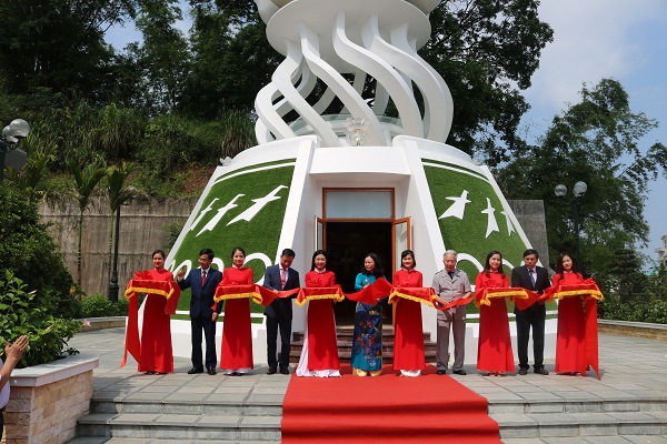 | Các đại biểu cắt băng khánh thành Nhà lưu niệm Bác Hồ tại Cửa khẩu Bắc Luân TP Móng Cái |