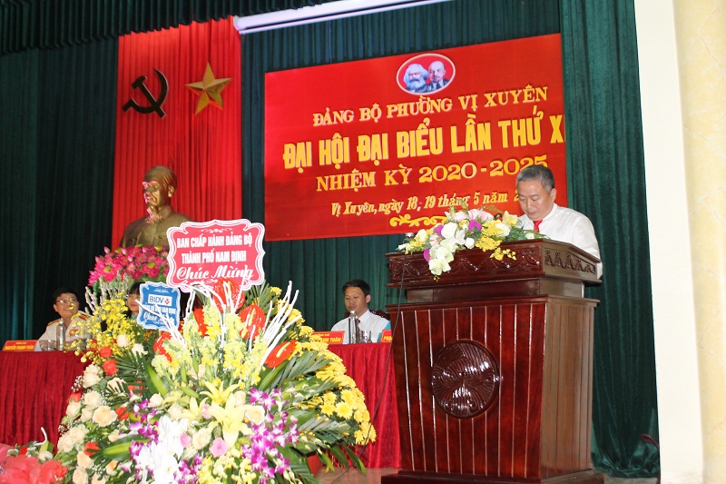 Ông Trần Nhật Lộc, Bí thư đảng ủy phường Vị Xuyên, thành phố Nam Định phát biểu khai mạc đại hội.